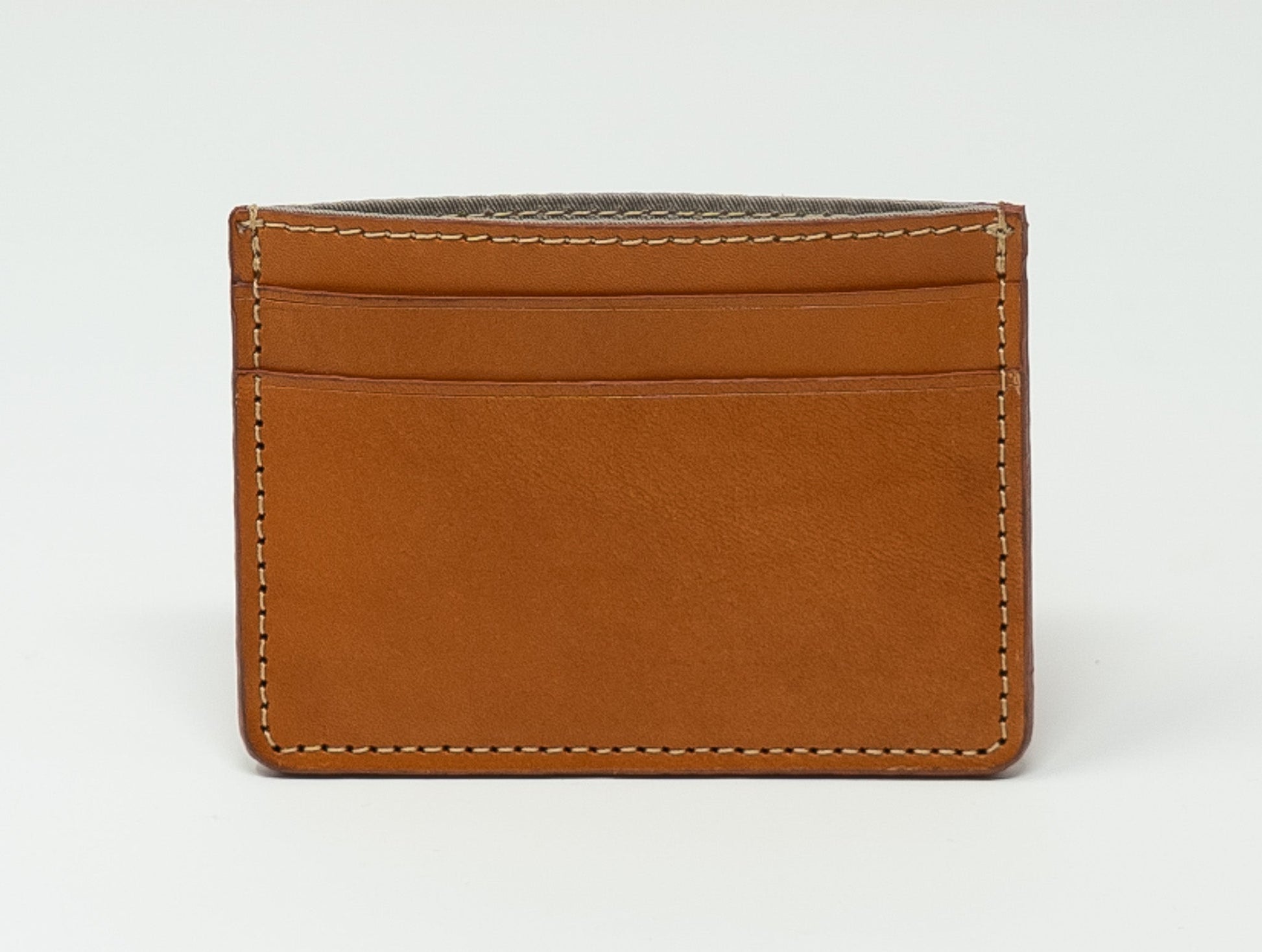 Our handmade leather card case is designed for those who like to keep things clean and carry only what they need. Each one is crafted by hand in England using full-grain hard wearing leather with cotton twill - lined middle compartment.